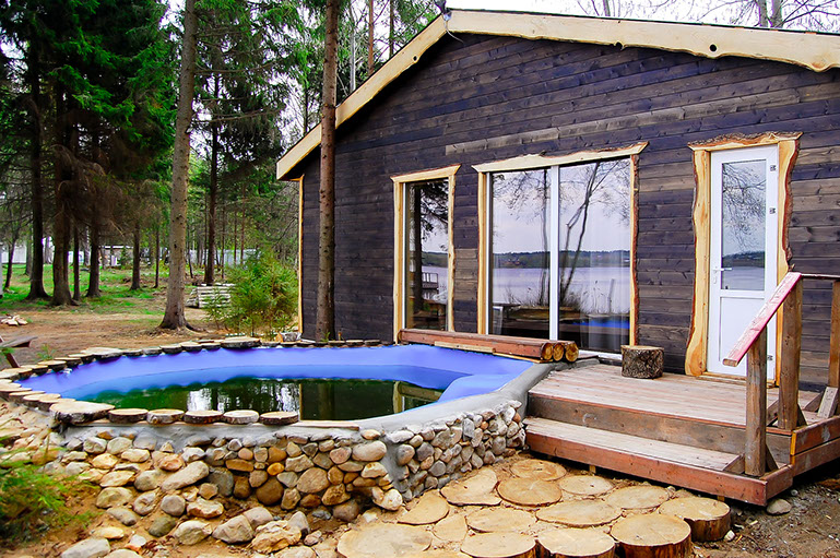 Банный комплекс рассчитан на 12 человек — каждому будет комфортно. Мы предоставляем специальные условия гостям, которые приезжают к нам каждую неделю. Здание 9м на 9м, парная 25 м2, комната отдыха 30 м2, купель, участок 10 соток на берегу озера (зимой прорубь)